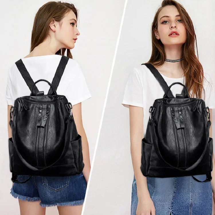 2020 New soft leather backpack waterproof black color double front zipper bags high quality bag pack for women bagpackBuy Now On Aliexpress